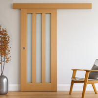 Bespoke Thruslide Surface Utah Oak Door - Frosted Glass - Sliding Door and Track Kit - Prefinished