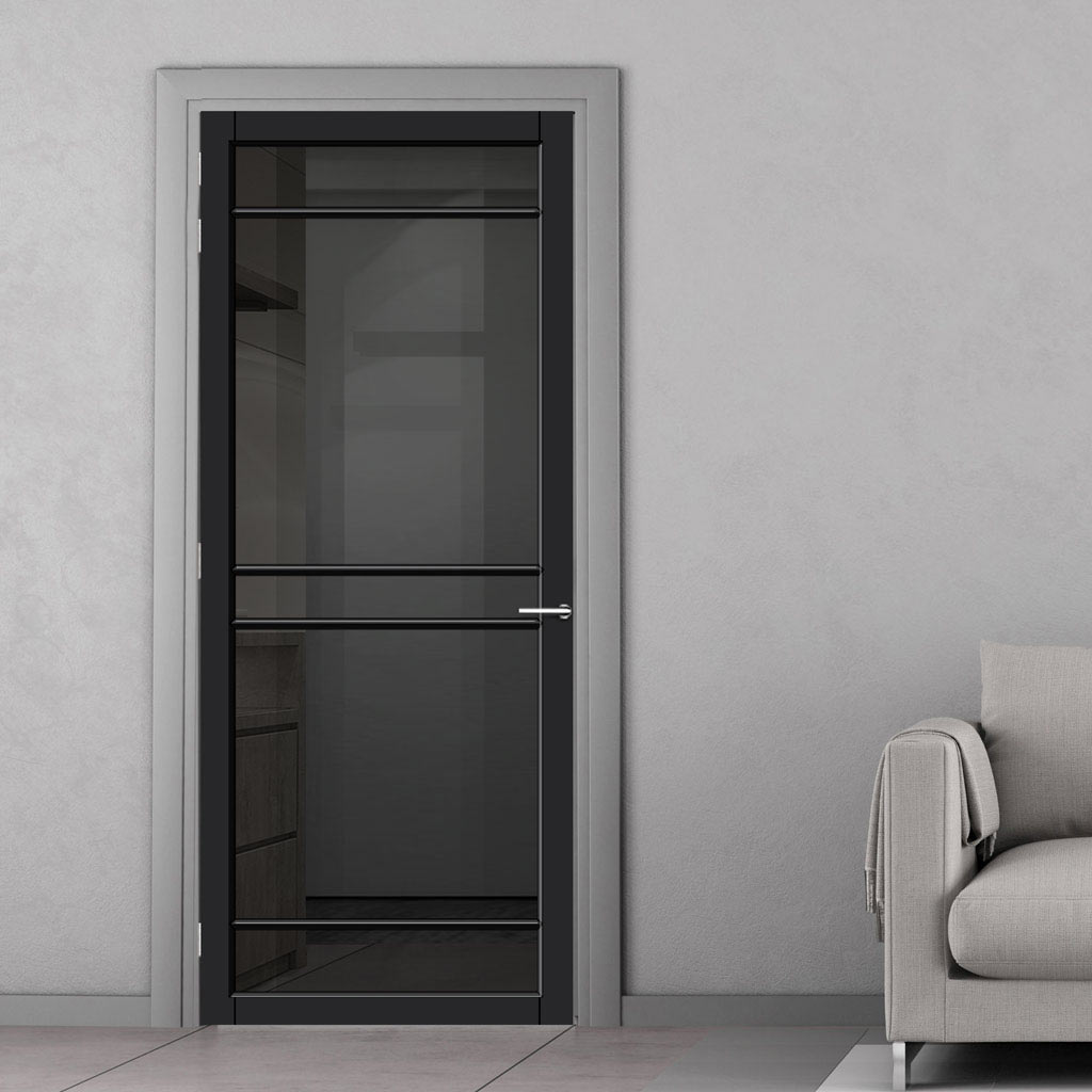 Ebida Solid Wood Internal Door UK Made DD0113T Tinted Glass - Shadow Black Premium Primed - Urban Lite® Bespoke Sizes