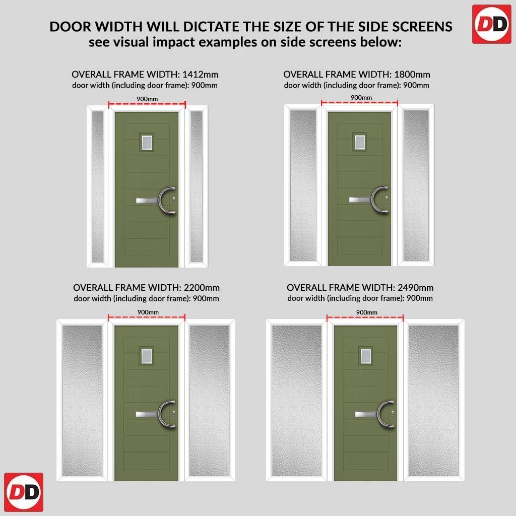 Aruba 1 Urban Style Composite Front Door Set with Double Side Screen - Ice Edge Glass - Shown in Reed Green