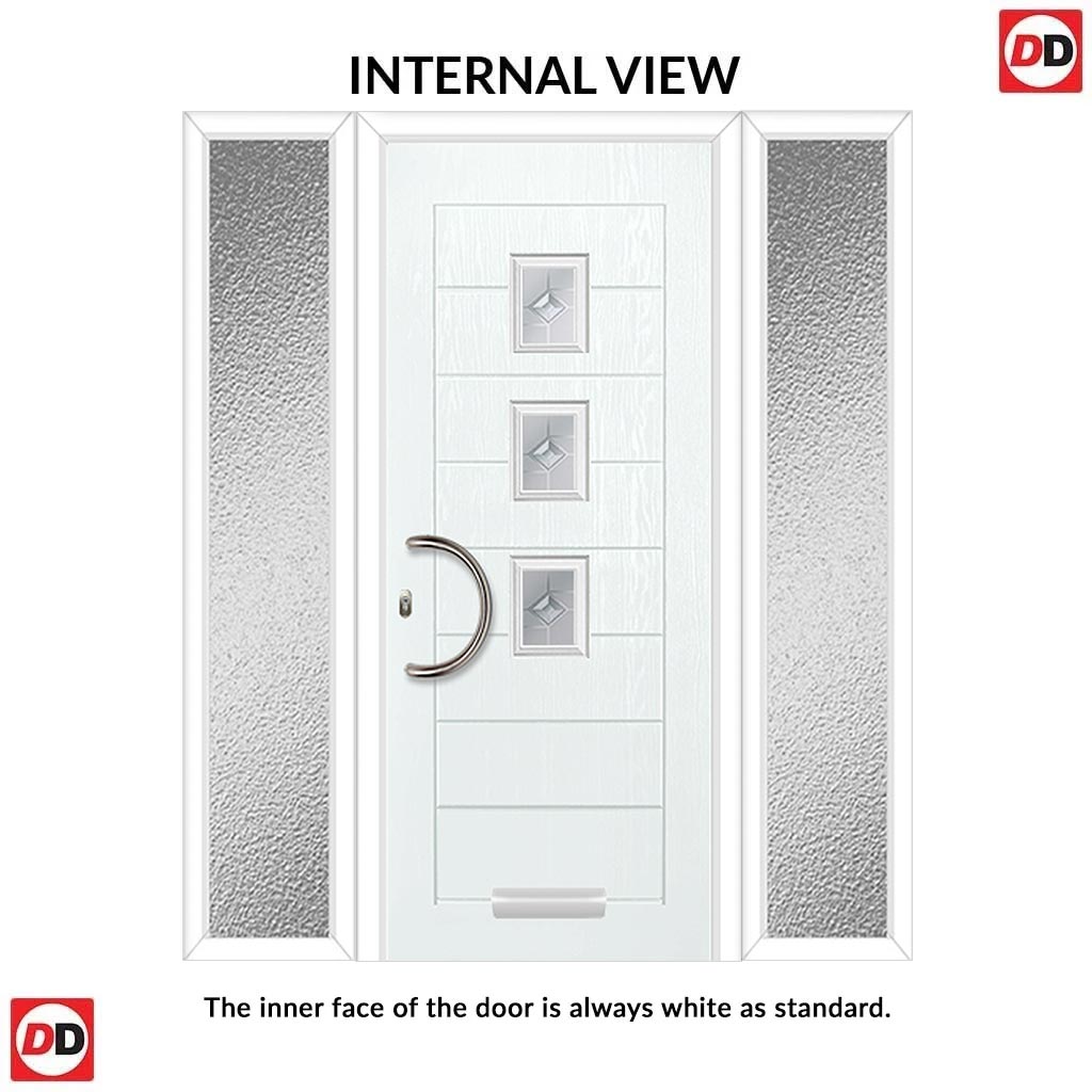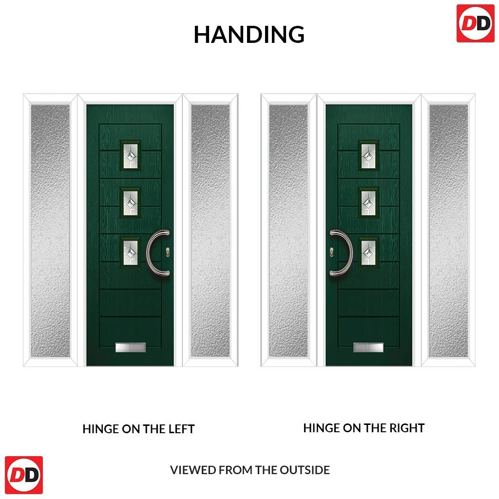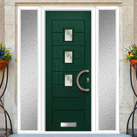 Aruba 3 Urban Style Composite Front Door Set with Double Side Screen - Central Roma Glass - Shown in Green