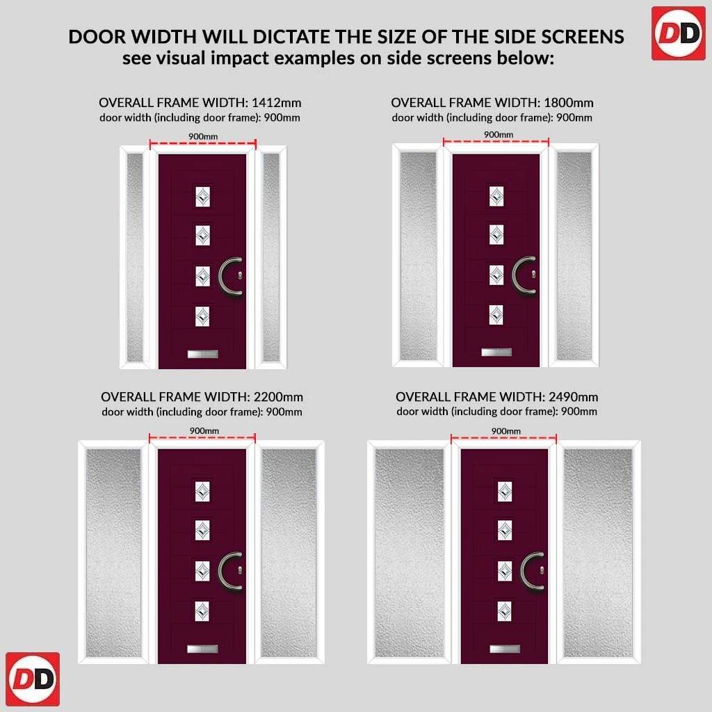 Aruba 4 Urban Style Composite Front Door Set with Double Side Screen - Central Pusan Glass - Shown in Purple Violet