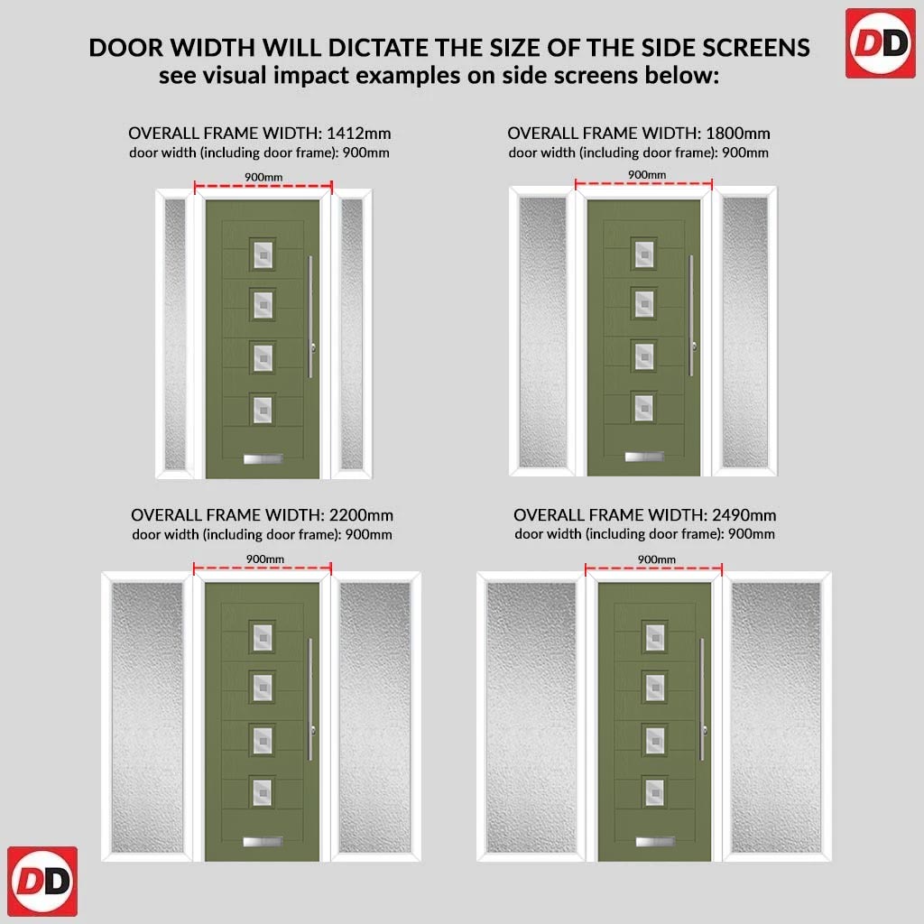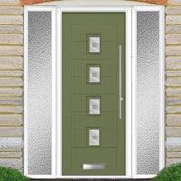Aruba 4 Urban Style Composite Front Door Set with Double Side Screen - Central Sandblast Ellie Glass - Shown in Reed Green