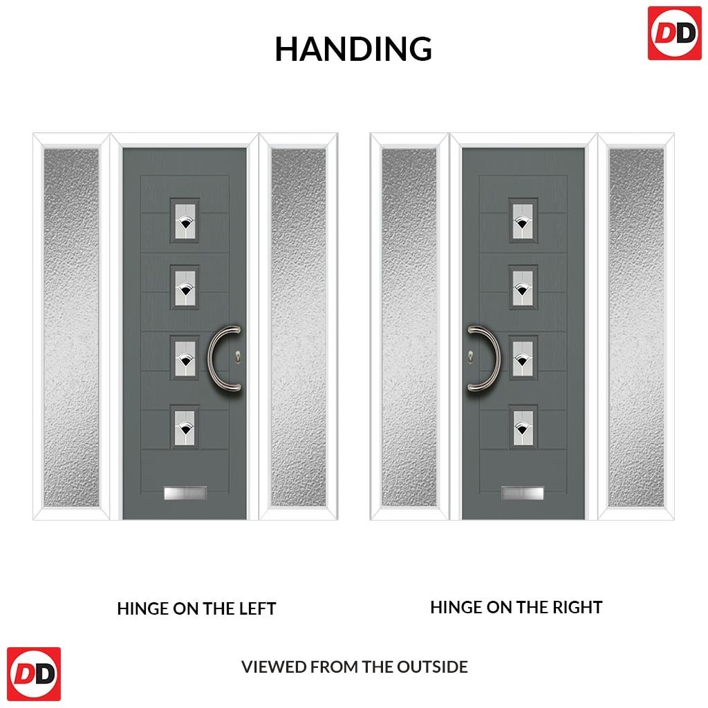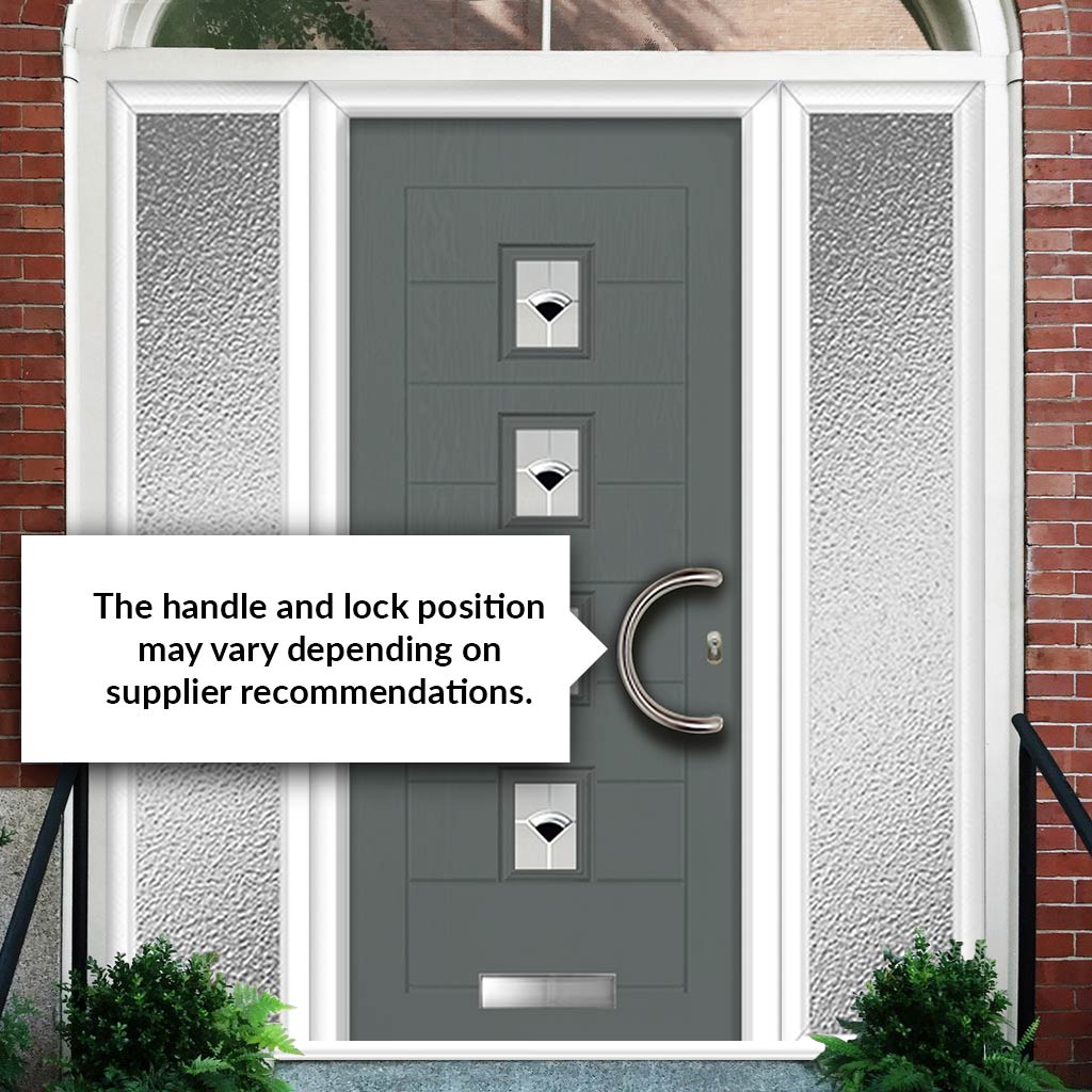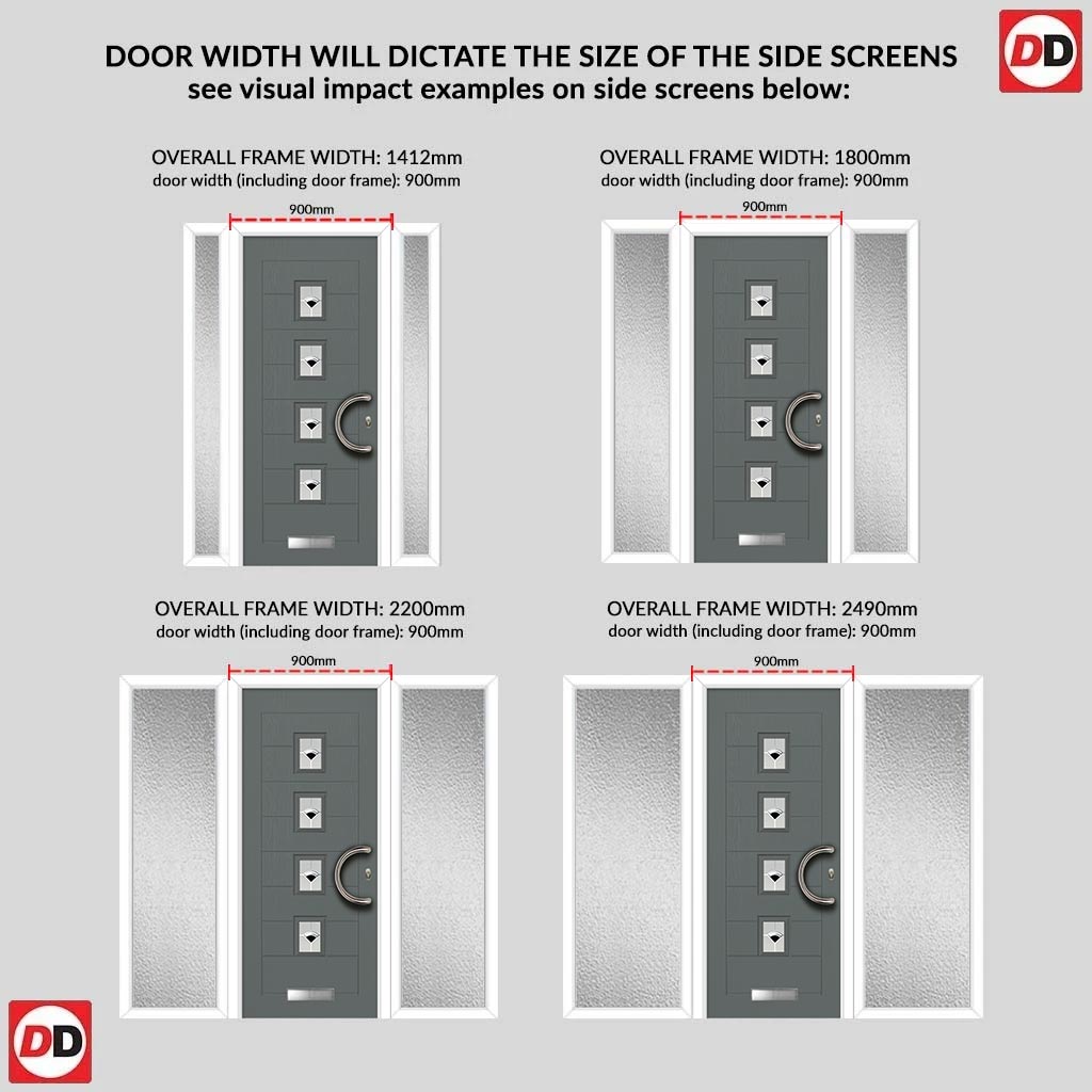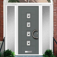 Aruba 4 Urban Style Composite Front Door Set with Double Side Screen - Polar Black Glass - Shown in Mouse Grey