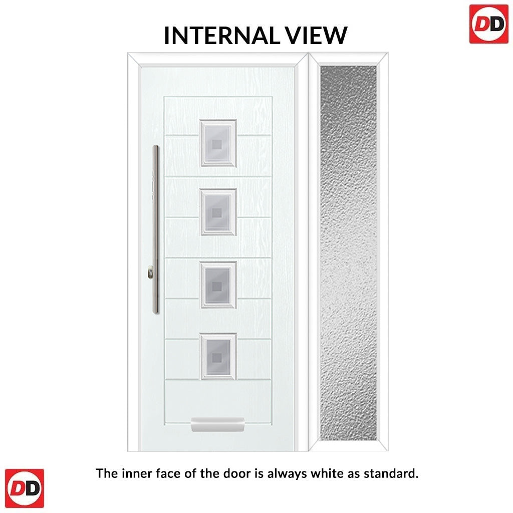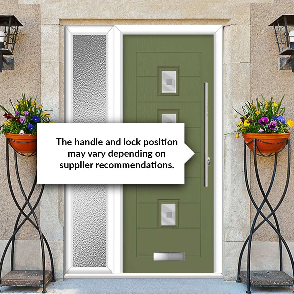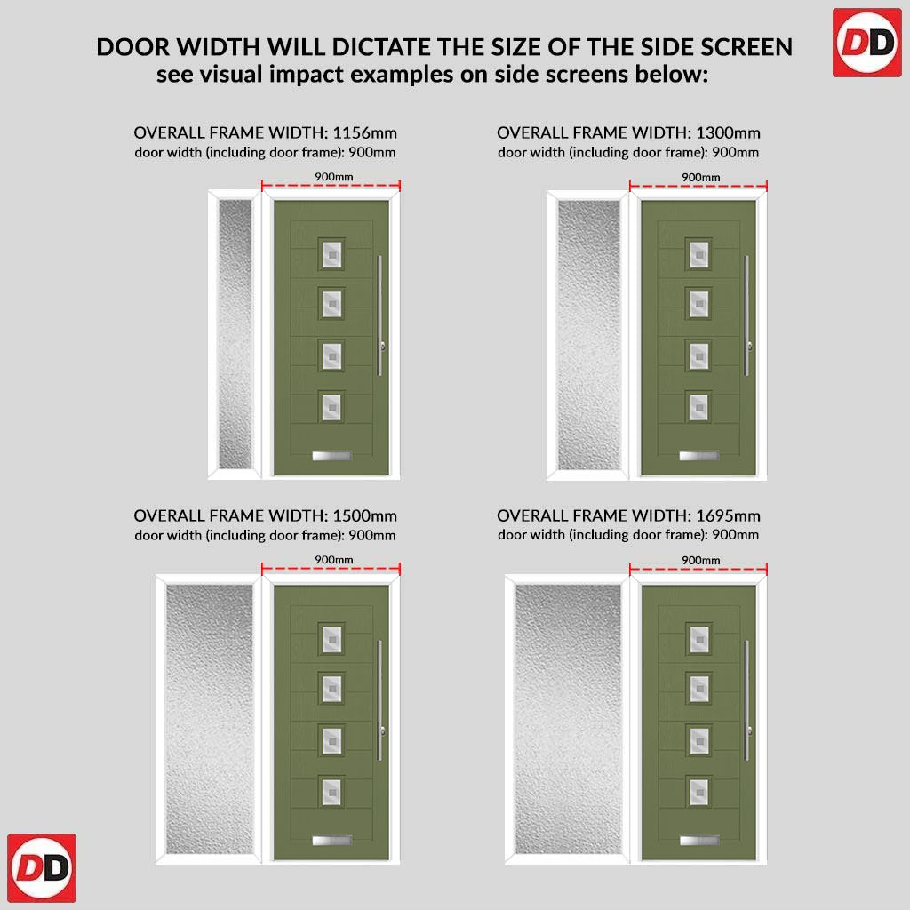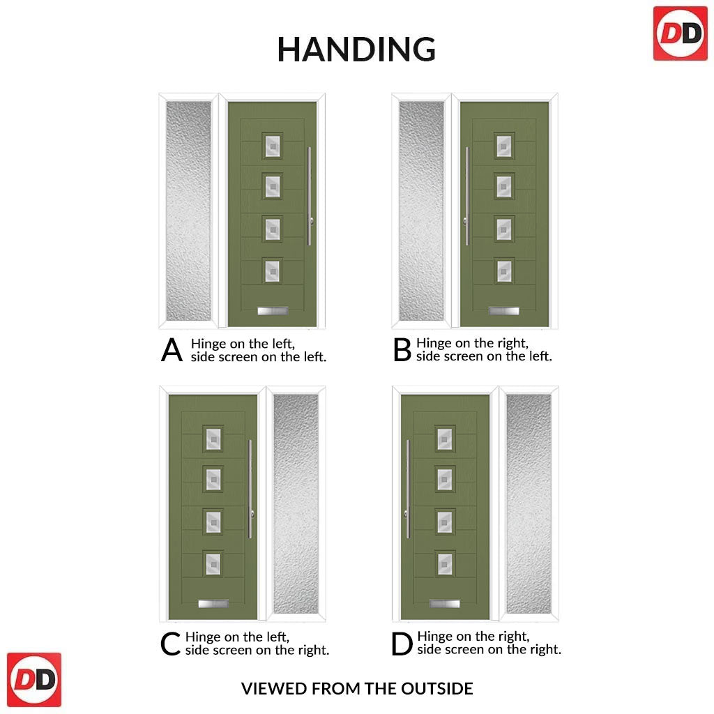 Aruba 4 Urban Style Composite Front Door Set with Single Side Screen - Central Sandblast Ellie Glass - Shown in Reed Green