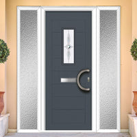 Catalina 1 Urban Style Composite Front Door Set with Double Side Screen - Pusan Glass - Shown in Slate Grey