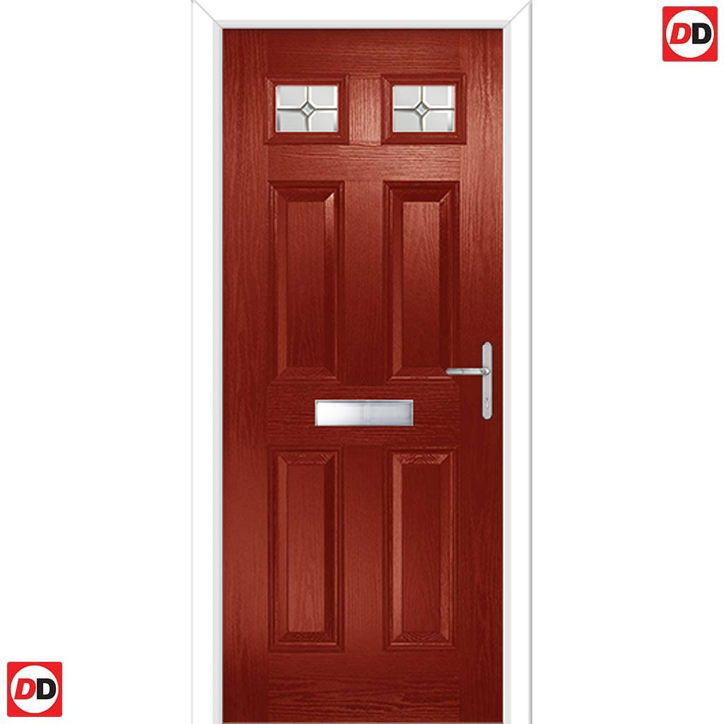 Premium Composite Front Door Set - Camarque 2 Mirage Glass - Shown in Red