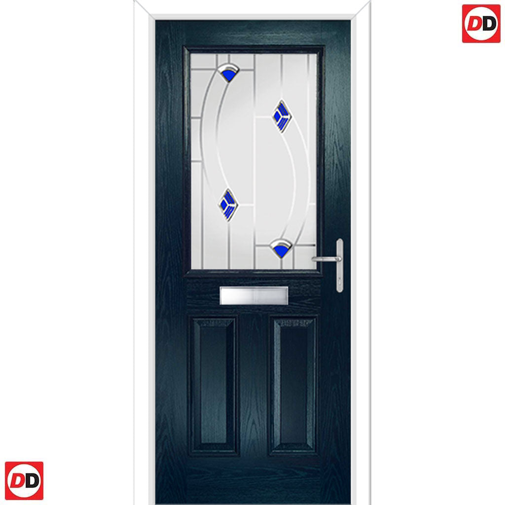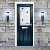 Premium Composite Front Door Set - Mulsanne 1 Kupang Blue Glass - Shown in Blue