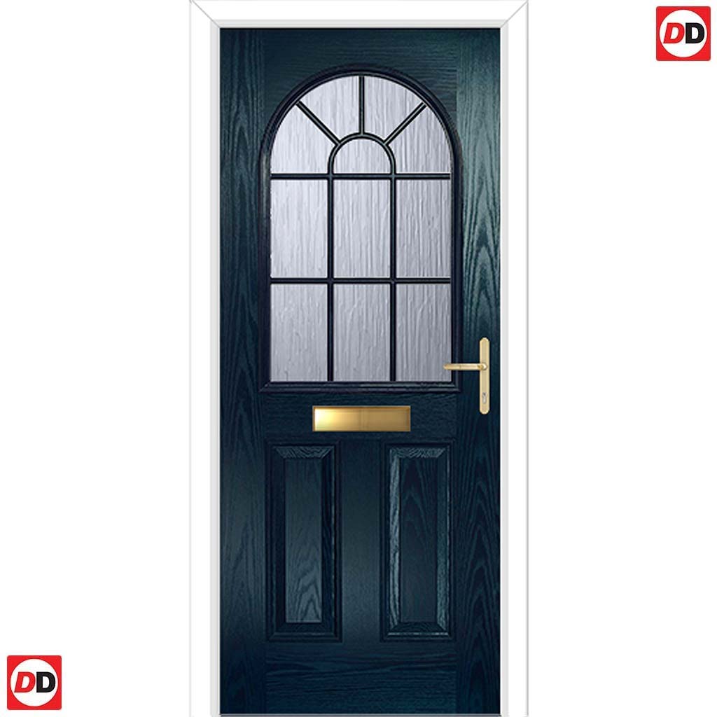 Premium Composite Front Door Set - Snipe 1 Geo Bar Cotswold Glass - Shown in Blue