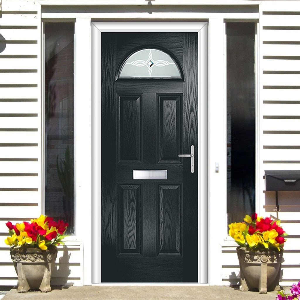 Premium Composite Front Door Set - Tuscan 1 Pusan Glass - Shown in Anthracite Grey