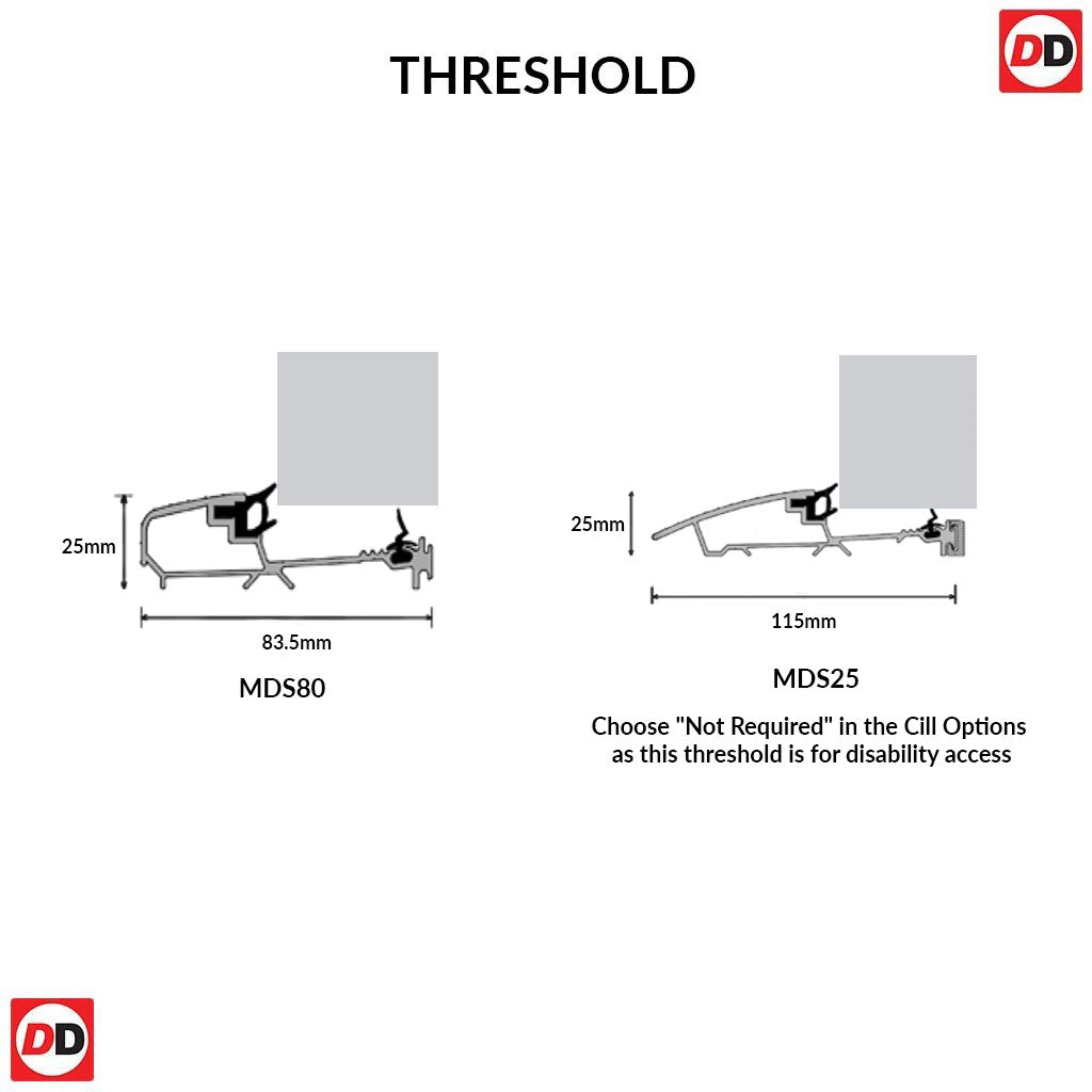 - Threshold weather bar below the door as chosen by you.