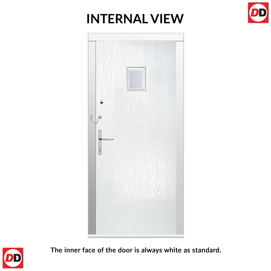 Introducing the Aruba 1 Composite Fire Door Set, featuring a sleek and contemporary woodgrained design, complemented by a single clear glass panel available in a range of modern colours.
