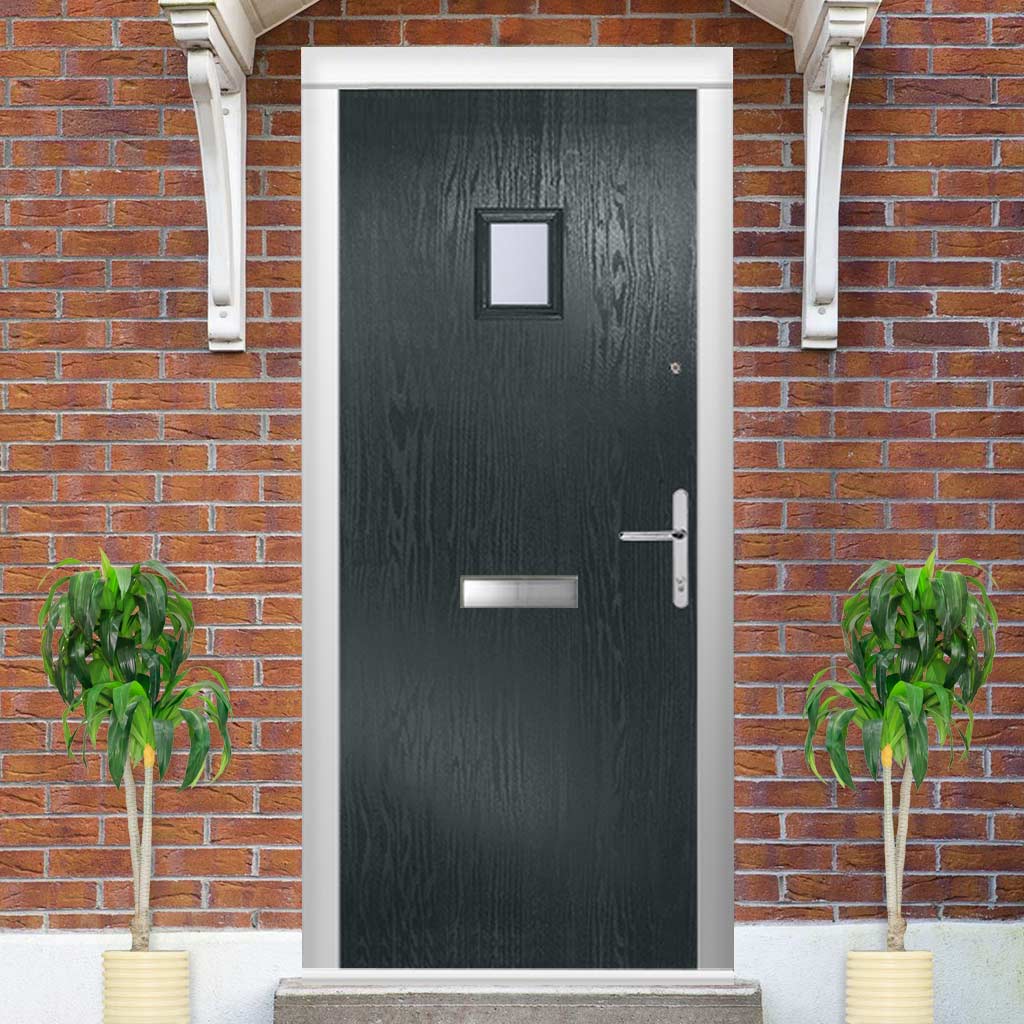 Composite Fire Front Door Set - Aruba 1 with Clear Glass - Shown in Anthracite Grey