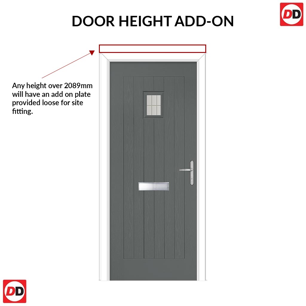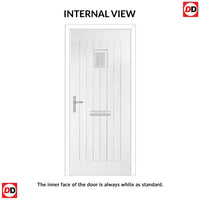 Note: For external prehung composite doors with glass. All glazed doors will have an obscure Stippolyte glass on the inside for privacy but could be changed to clear, costs may vary.