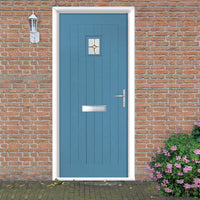 Country Style Aruba 1 Composite Front Door Set with Mirage Glass - Shown in Pastel Blue