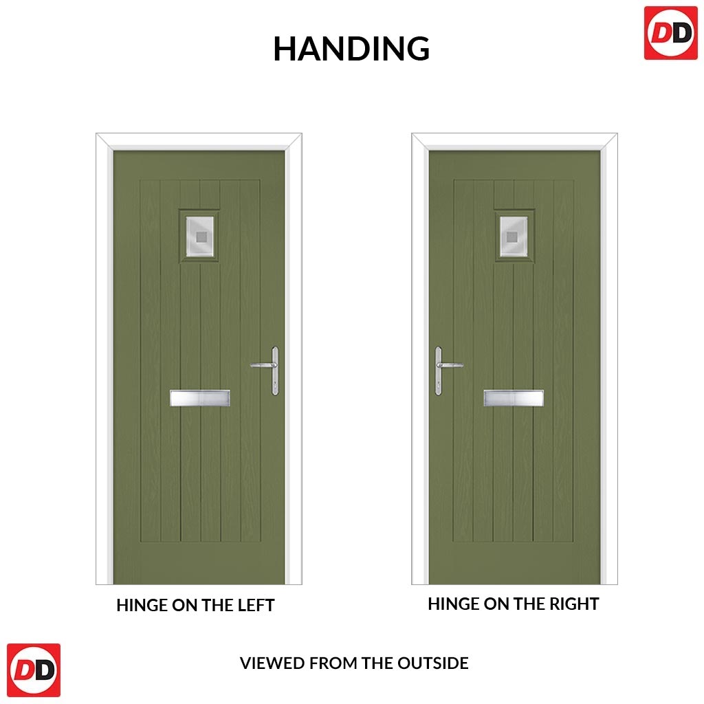 Country Style Aruba 1 Composite Front Door Set with Sandblast Ellie Glass - Shown in Reed Green