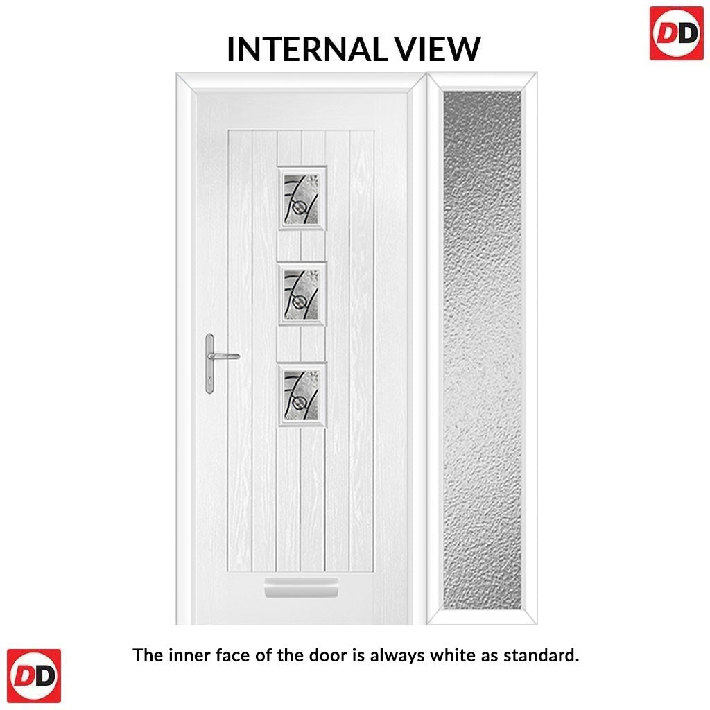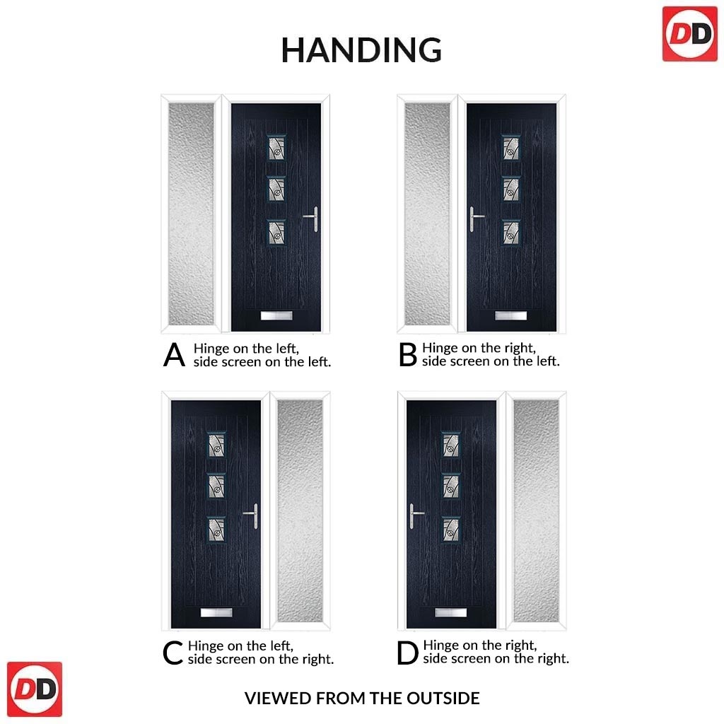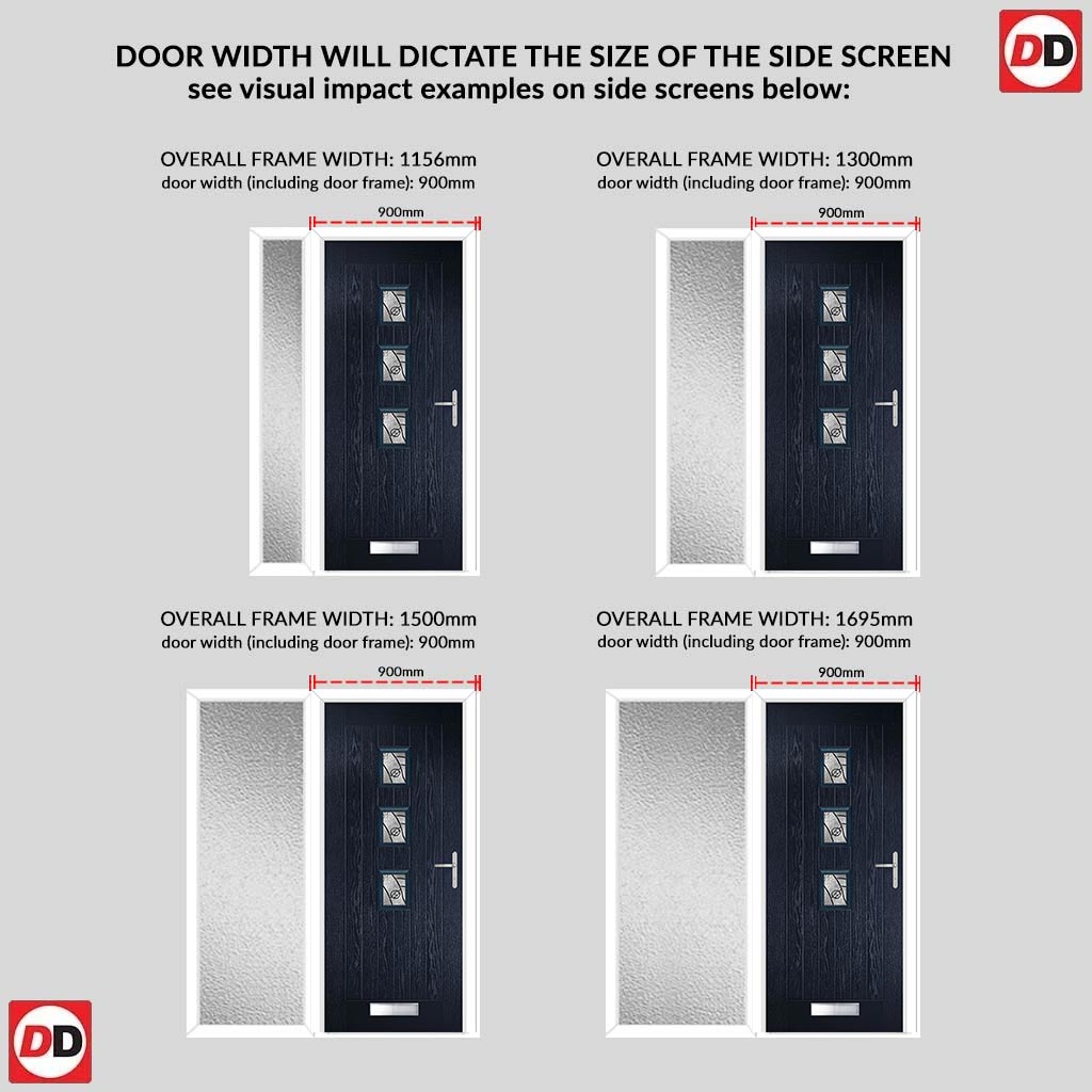 Country Style Aruba 3 Composite Front Door Set with Single Side Screen - Central Abstract Glass - Shown in Blue
