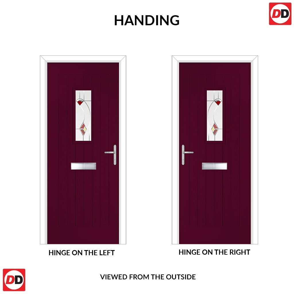 Country Style Catalina 1 Composite Front Door Set with Kupang Red Glass - Shown in Purple Violet