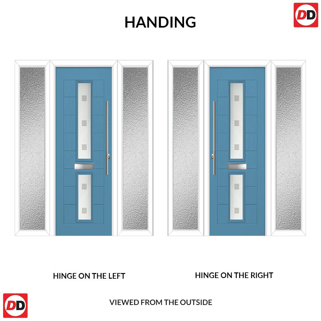 Debonaire 2 Urban Style Composite Front Door Set with Double Side Screen - Central Sandblast Ellie Glass - Shown in Pastel Blue