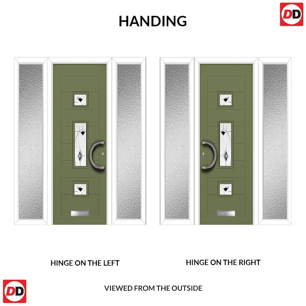 Firenza 3 Urban Style Composite Front Door Set with Double Side Screen - Central Kupang Black Glass - Shown in Reed Green