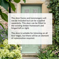 This door is perfect if you are thinking of the reinstatement for an external door within an existing frame. To facilitate this, the doors can be trimmed by an impressive 60mm in height - 20mm top - 40mm bottom and 20mm on each side.