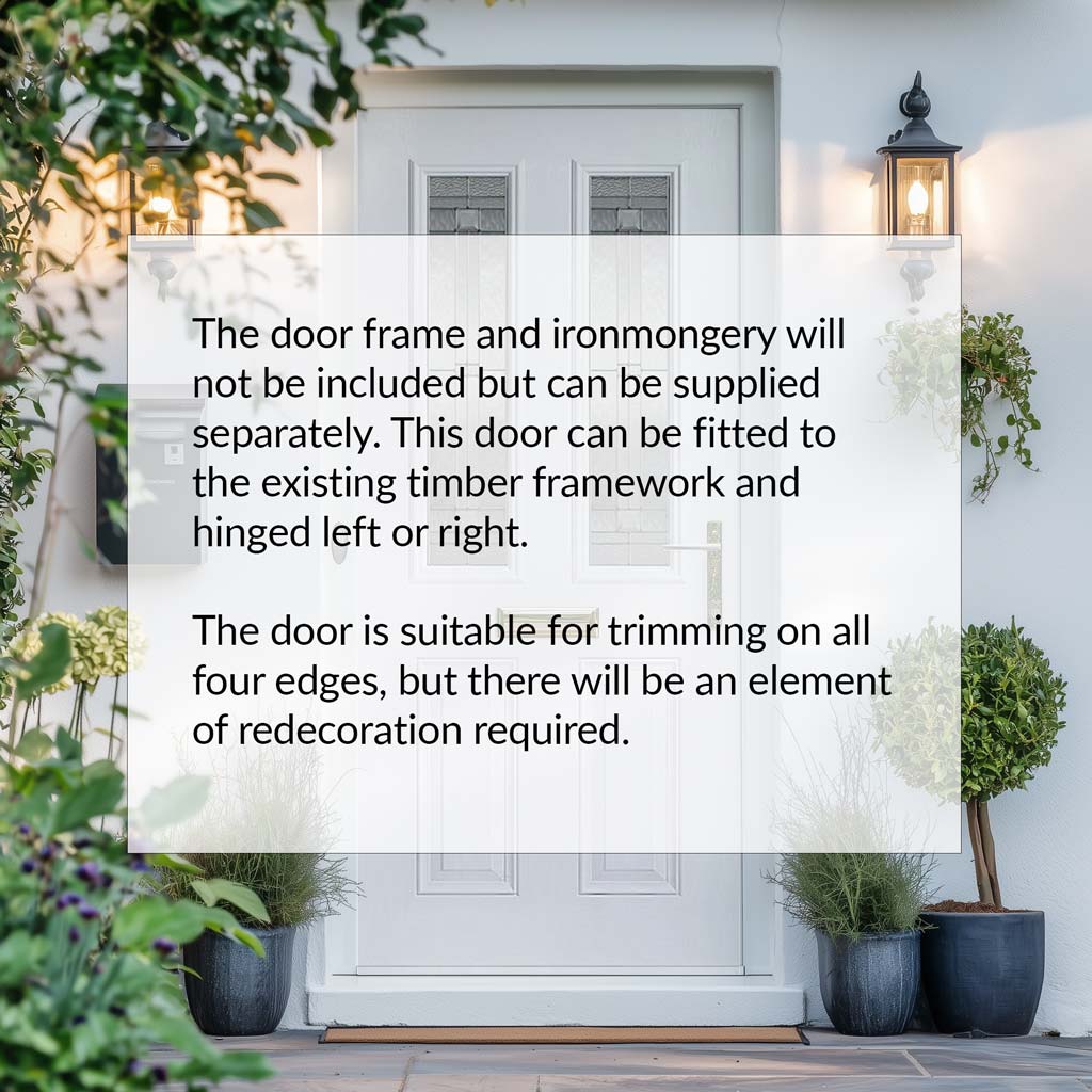 Please note that the door frame, sidelight and ironmongery will not be included but can be supplied separately.
