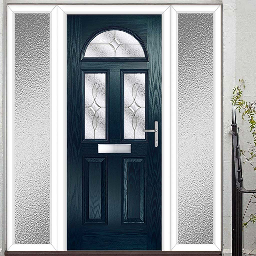 Premium Composite Front Door Set with Two Side Screens - Tuscan 3 Flair Glass - Shown in Blue
