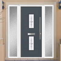 Seville 2 Urban Style Composite Front Door Set with Double Side Screen - Pusan Glass - Shown in Slate Grey