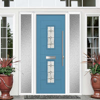 Seville 2 Urban Style Composite Front Door Set with Double Side Screen - Mirage Glass - Shown in Pastel Blue