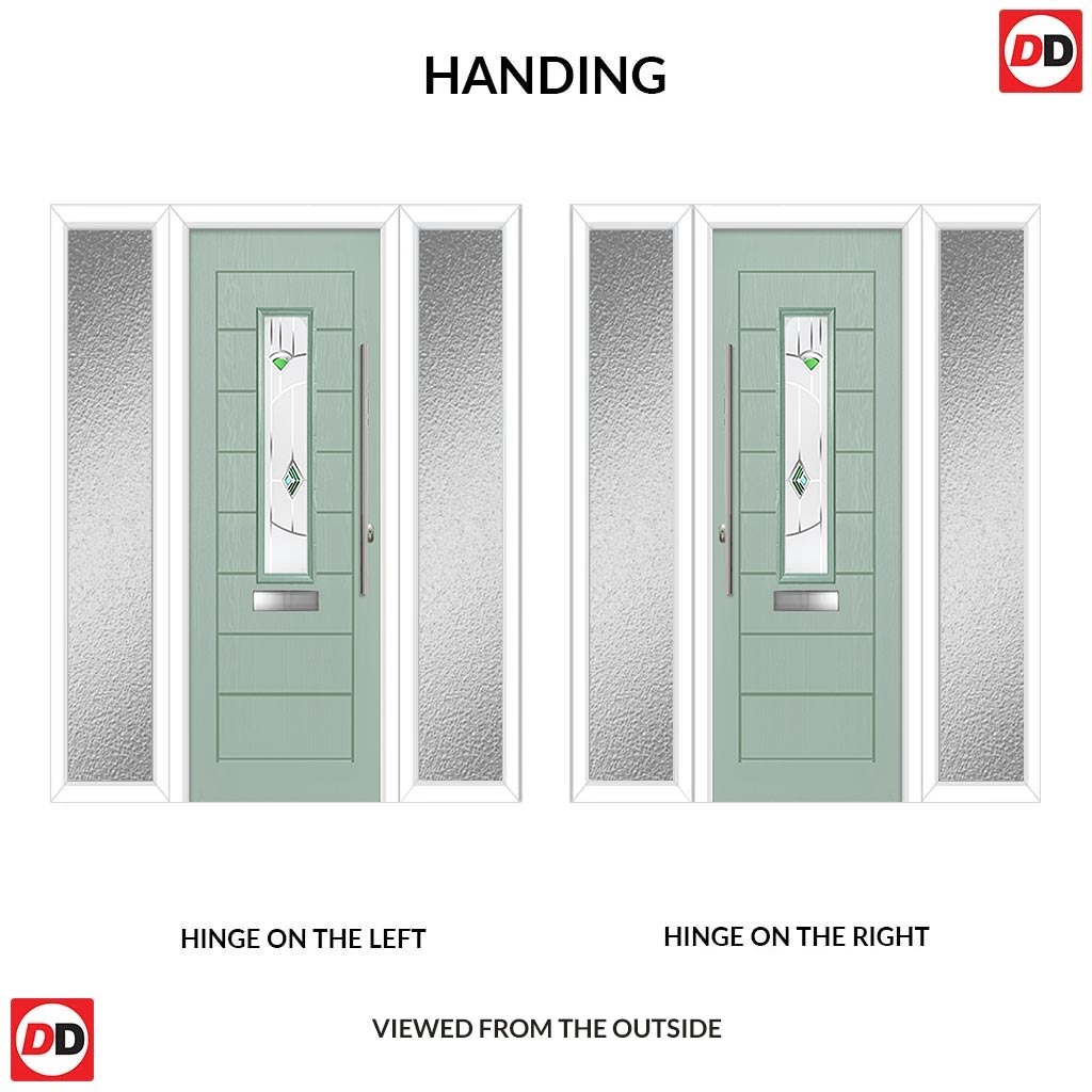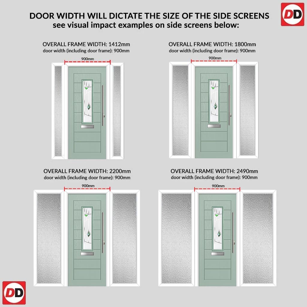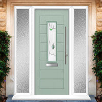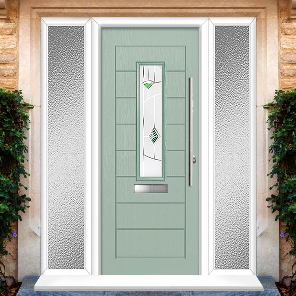 Tortola 1 Urban Style Composite Front Door Set with Double Side Screen - Murano Green Glass - Shown in Chartwell Green