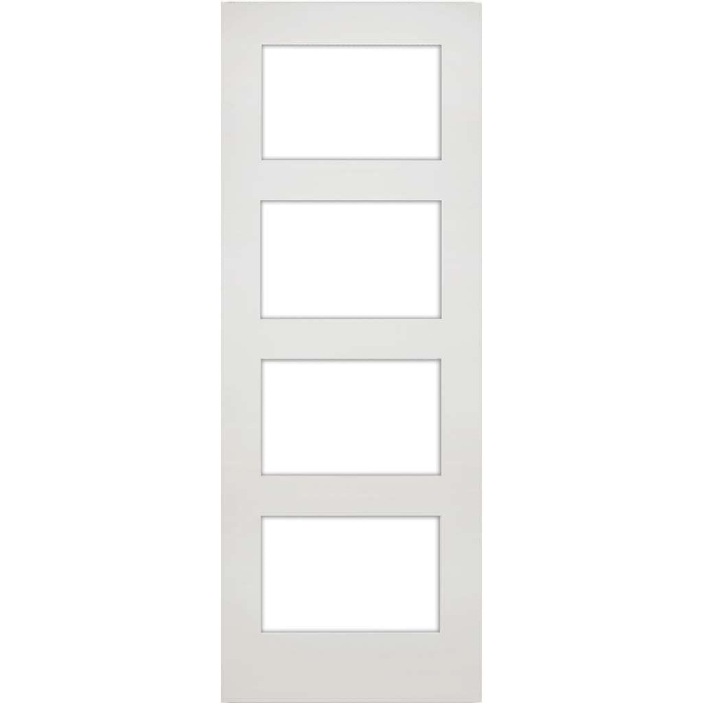 Premium Single Sliding Door & Wall Track - Coventry White Primed Shaker Door - Clear Glass