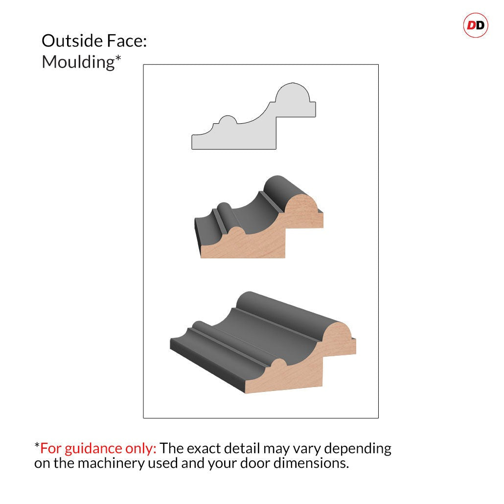 All glass profiles and beadings possess bevelled edges both inside and outside. The external panels will have projected mouldings, while the interior panel profile will showcase a bevelled design.