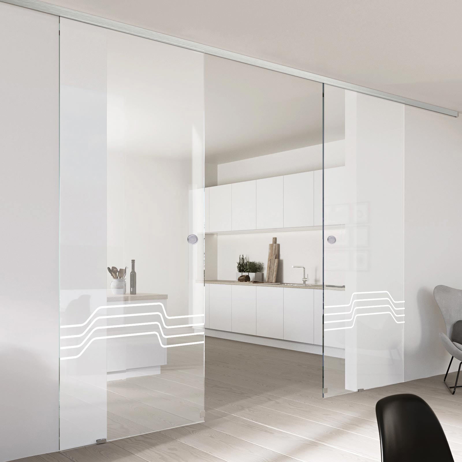 Double Glass Sliding Door - Allanton 8mm Clear Glass - Obscure Printed Design with Elegant Track