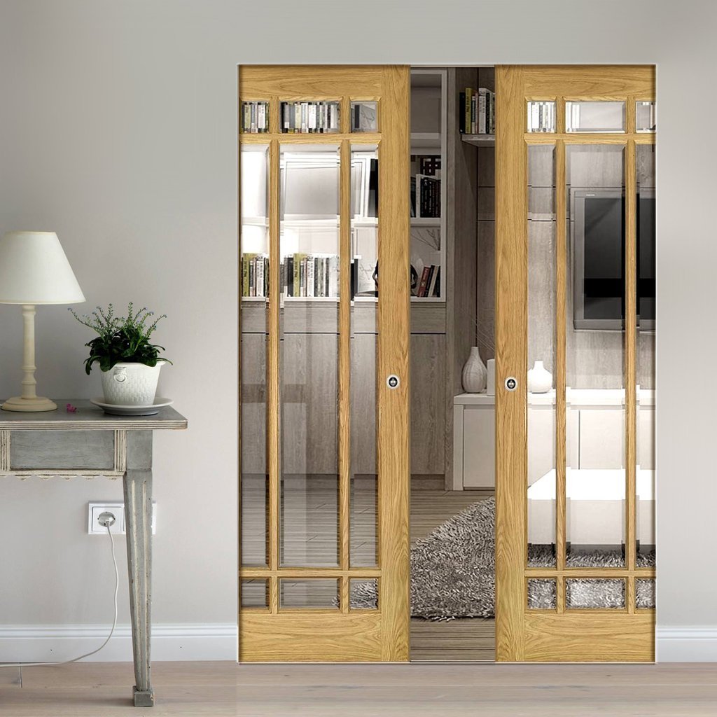 Kerry Oak Absolute Evokit Double Pocket Doors - Bevelled Clear Glass - Unfinished