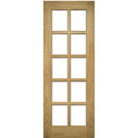 Room Divider - Bristol Oak Unfinished Door with Full Glass Side - 10 Pane Clear Bevelled Glass - 2018mm High - Multiple Widths