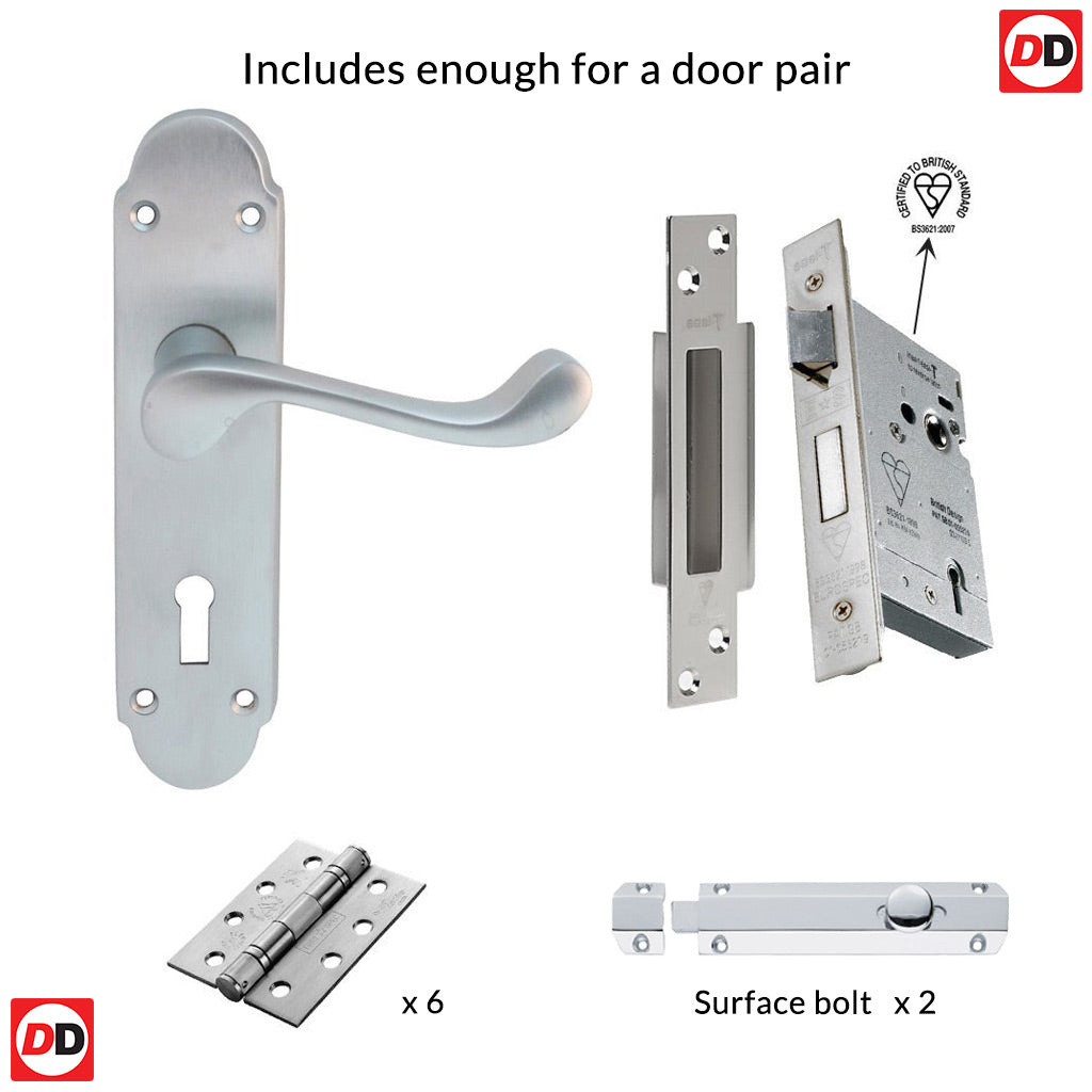 Double Door DL168 Oakley Suite Lever Lock Satin Chrome - Combo Handle & Accessory Pack