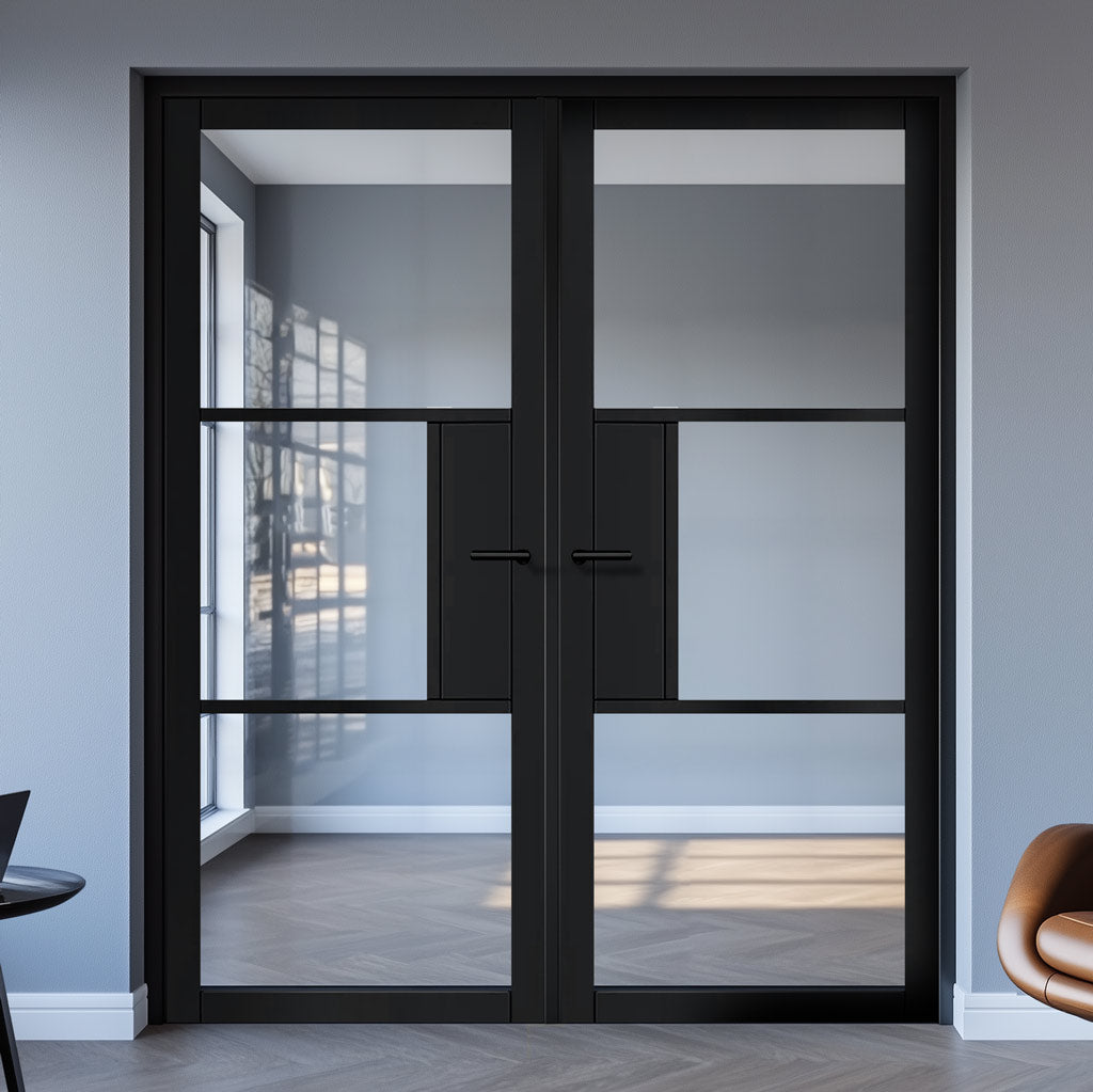 Cosmo Black Industrial Door with Clear Glass - Laminated - Prefinished