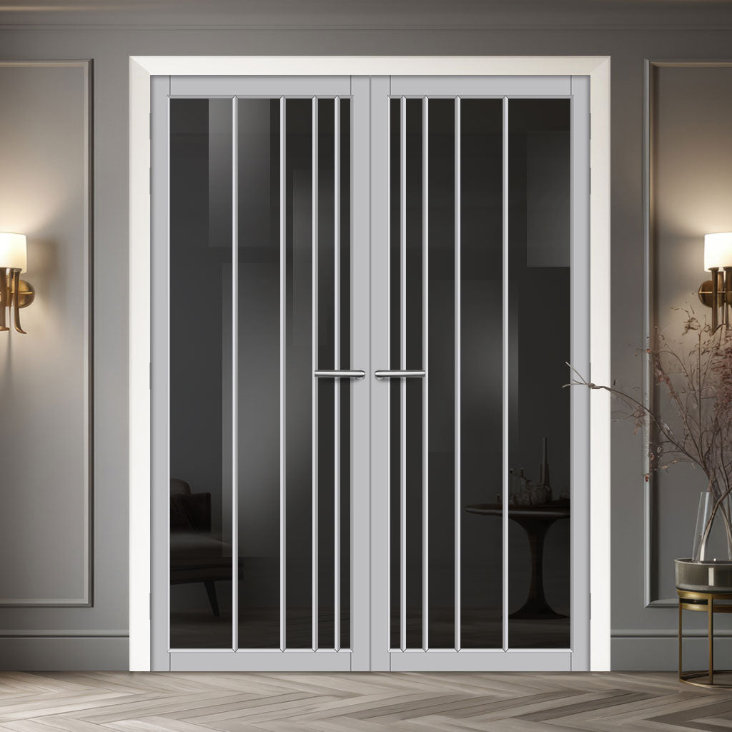 Simona Solid Wood Internal Door Pair UK Made DD0105T Tinted Glass - Mist Grey Premium Primed - Urban Lite® Bespoke Sizes