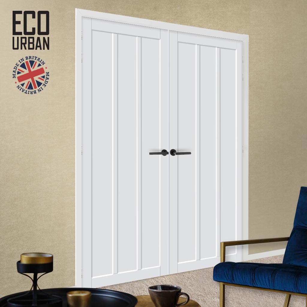 Cornwall 3 Panel Solid Wood Internal Door Pair UK Made DD6404 - Eco-Urban® Cloud White Premium Primed