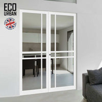 Glasgow 6 Pane Solid Wood Internal Door Pair UK Made DD6314G - Clear Glass - Eco-Urban® Cloud White Premium Primed