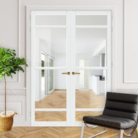 Eco-Urban Malvan 4 Pane Solid Wood Internal Door Pair UK Made DD6414G Clear Glass - Eco-Urban® Cloud White Premium Primed