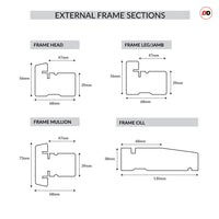 - 68mm Frame, 39mm High x 130mm Broad Cill, 73mm out at Mullions and 39mm in at the Rebate.