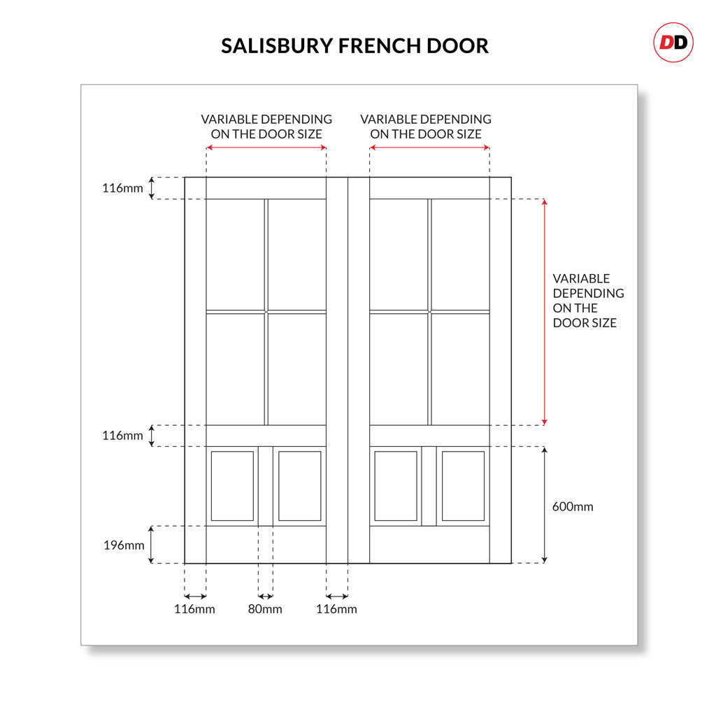 Made to Measure External Salisbury Traditional French Doors - 57mm Thick, Six Colour Options - Double Glazing