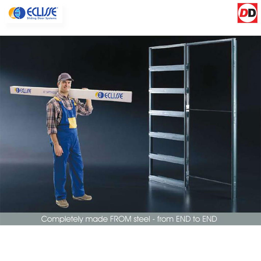 The system incorporates a galvanised factory constructed steel cassette section and a track set with all fittings, the timber jamb sections are supplied fully machined in kit form, doors may be supplied with full decoration but no decor is included to the cassette system parts or its frame, check each door as you browse for the exact details.