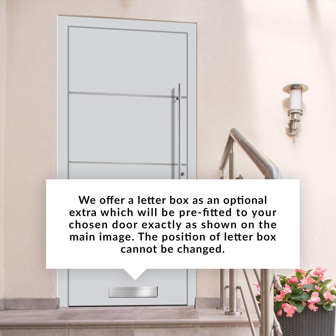 - We offer a stainless steel letter plate as an optional extra which will be pre-fitted to your chosen door exactly as shown on the main door image.