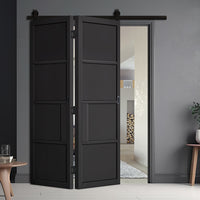 Sliding Top Mounted Black Folding Track & Double Door - Chelsea 4 Panel Black Painted Door - Prefinished