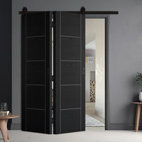Sliding Top Mounted Black Folding Track & Double Door - Laminate Vancouver Black Door - Prefinished