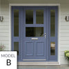 | Glazing | The door is fitted with 28 mm double glazing. If any sidelights or transoms are included, these will feature 14mm double glazing. The door and the sidelights (type B and C) come pre-glazed, while the full pane sidelights (A) will be supplied with loose glass for fitting during installation. |