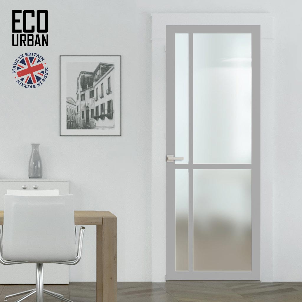 Handmade Eco-Urban Marfa 4 Pane Solid Wood Internal Door UK Made DD6313SG - Frosted Glass - Eco-Urban® Mist Grey Premium Primed