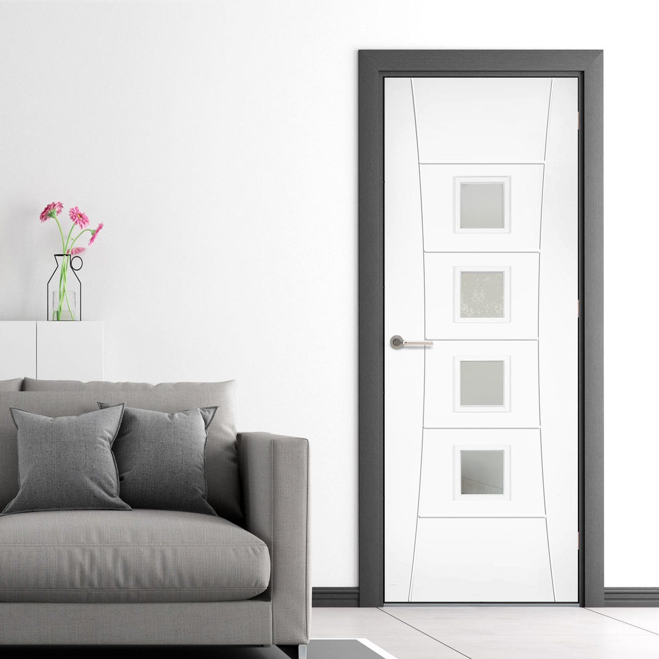 Bespoke Pamplona White Primed Flush Internal Door - Clear Glass