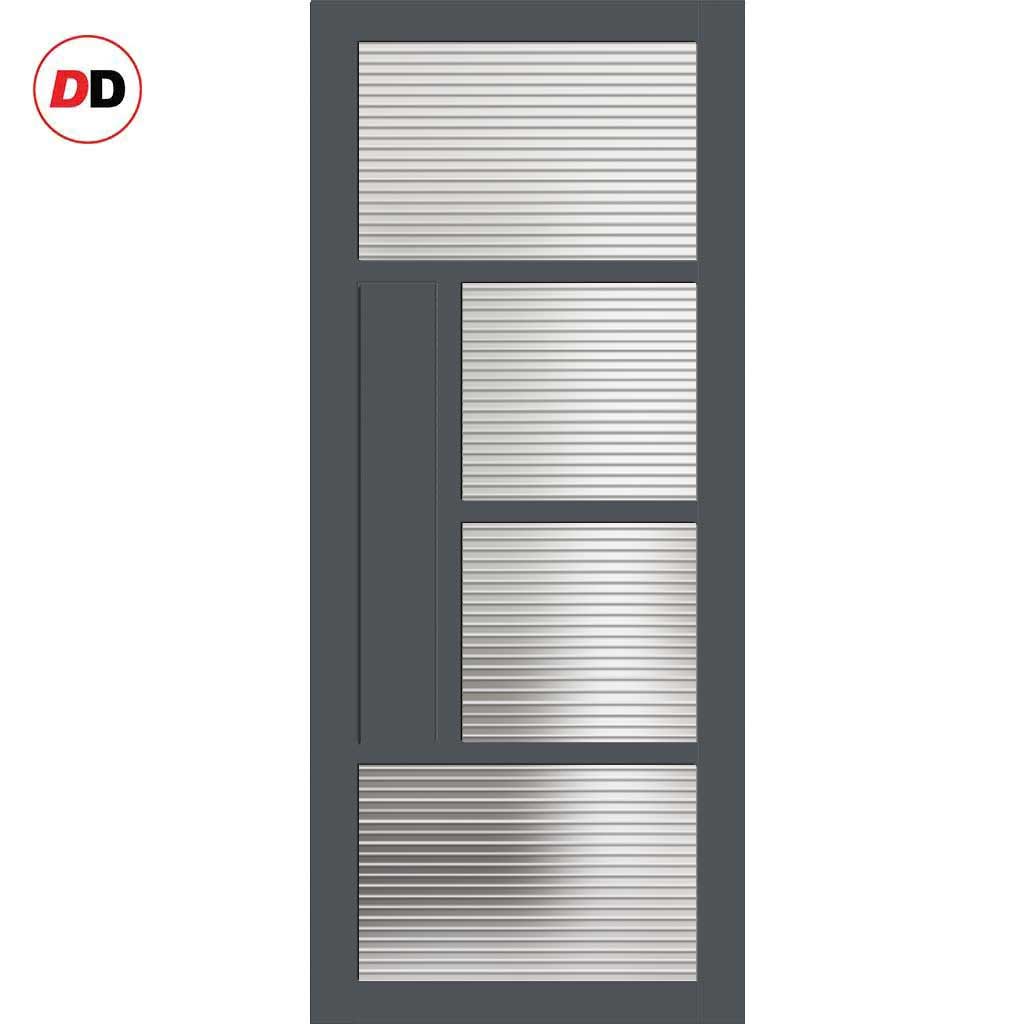 Boston 4 Pane Solid Wood Internal Door UK Made DD6311 - Clear Reeded Glass - Eco-Urban® Stormy Grey Premium Primed